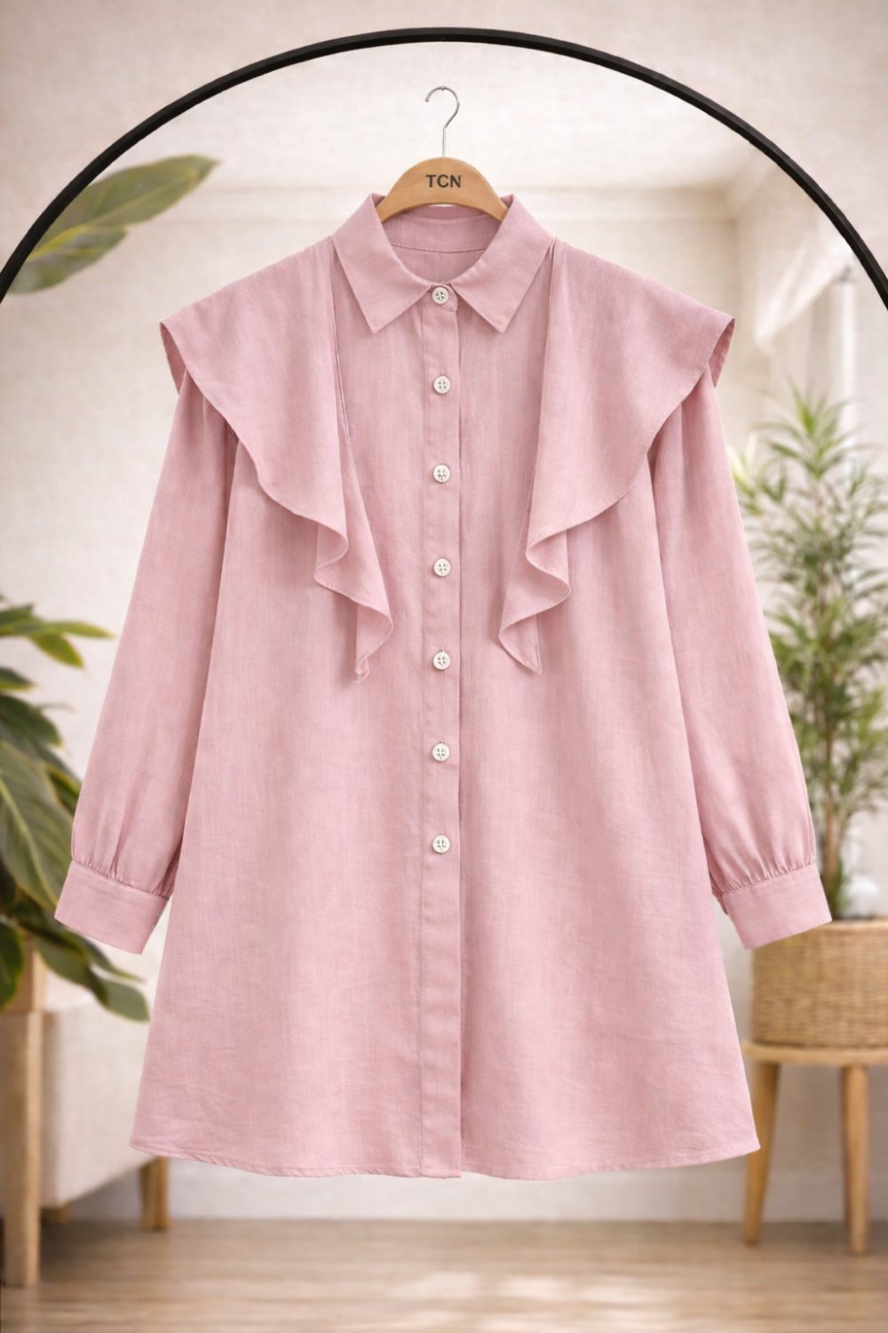 Seyyar pelerinli Kuşaklı Keten Tunu Pembe TCN40164