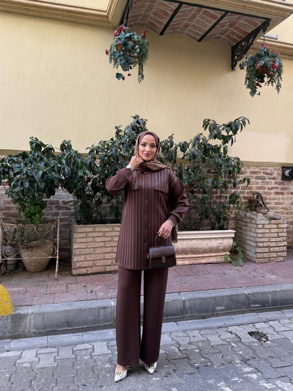 Taş işlemeli İkili Takım Kahve YR30553