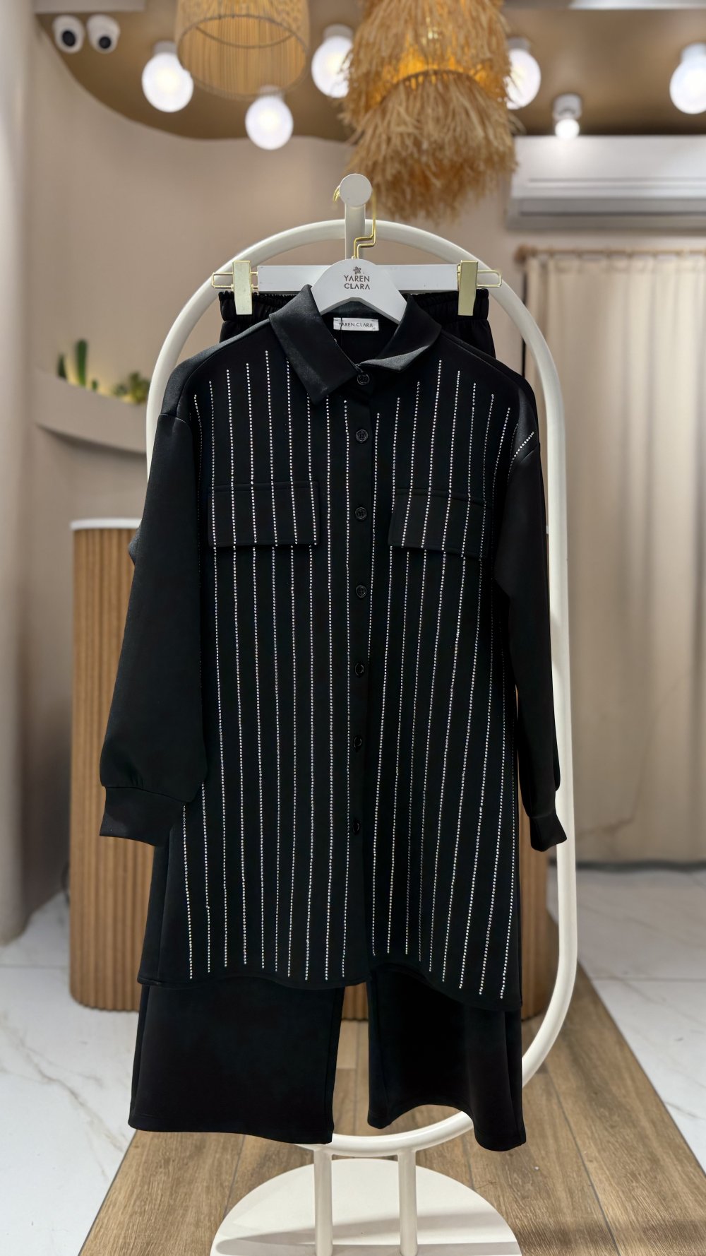 Taş işlemeli İkili Takım Siyah YR30553