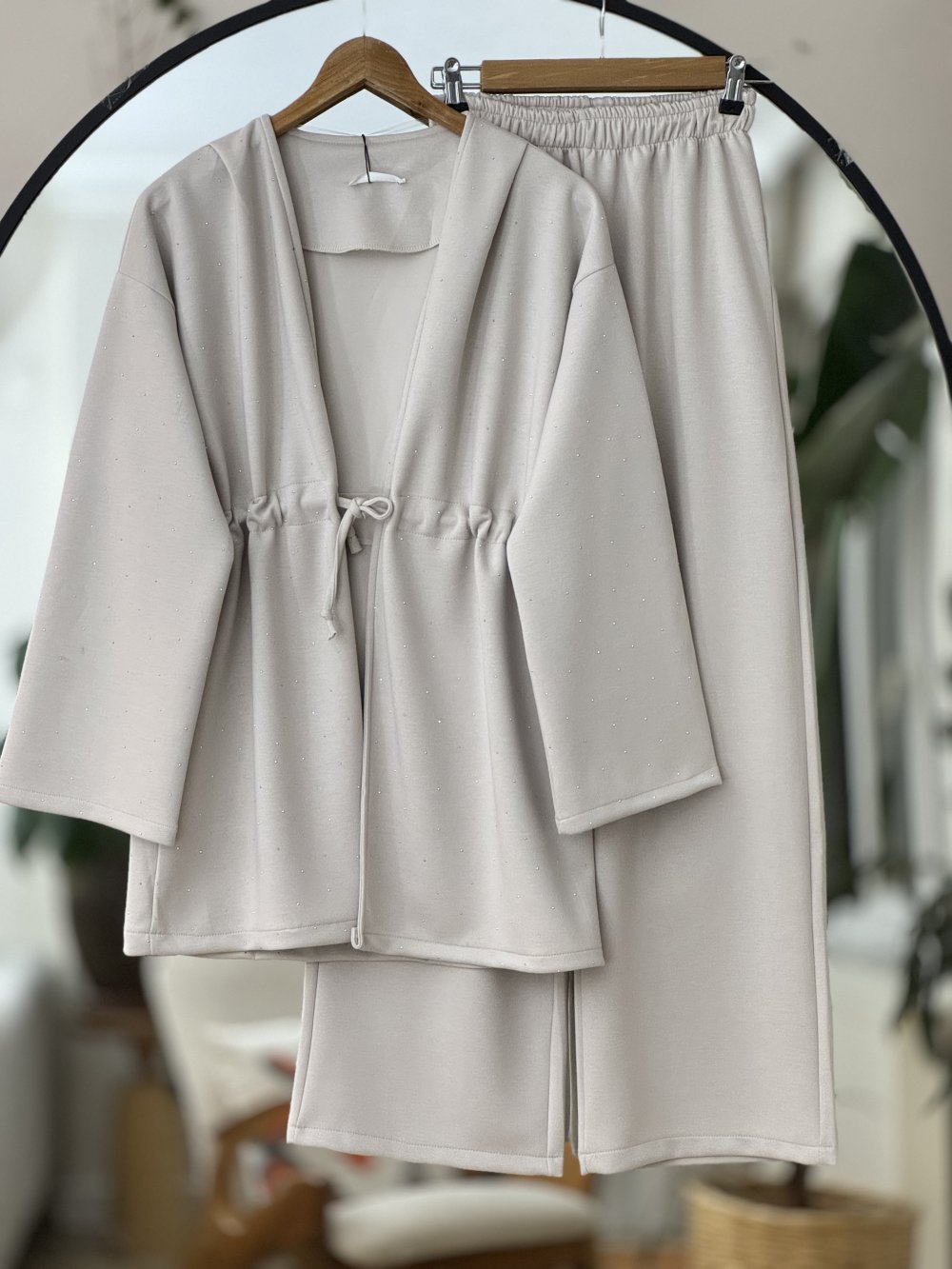 Taş işlemeli Ön bağlamalı Takım Bej YR30545