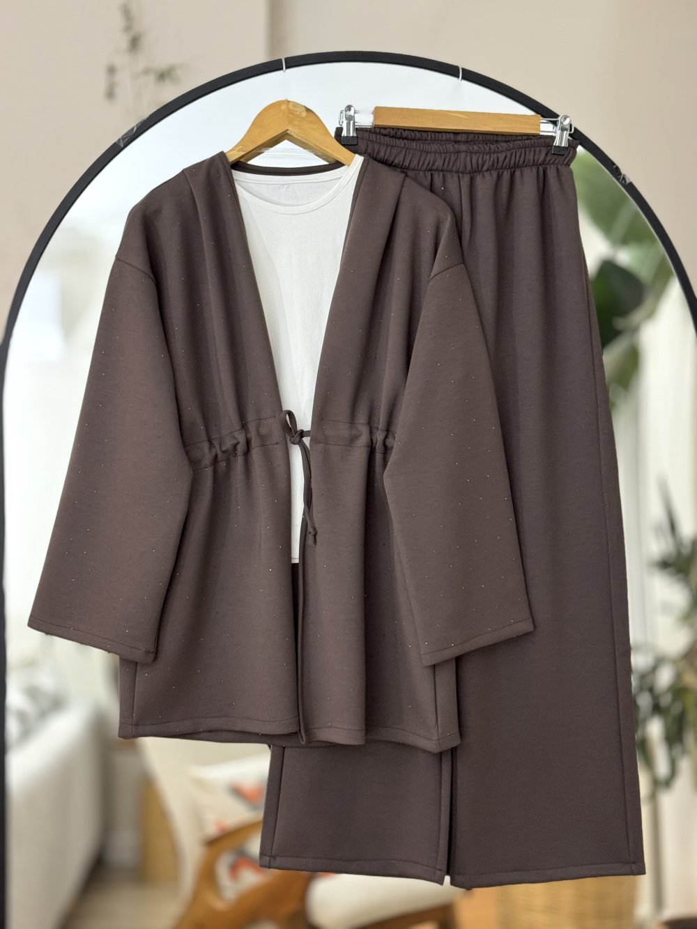 Taş işlemeli Ön bağlamalı Takım Kahve YR30545