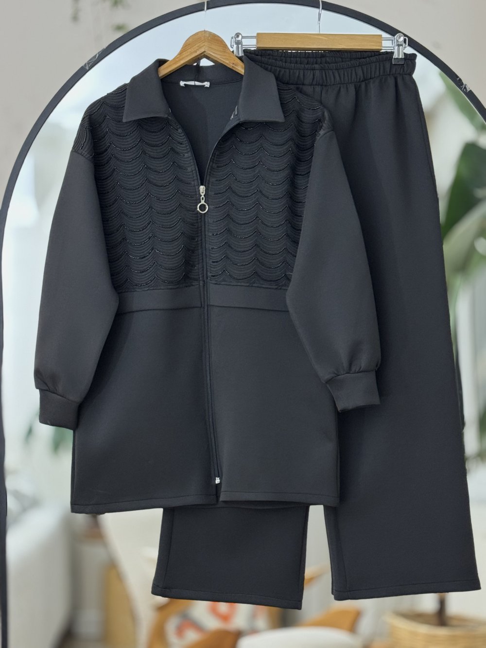 taşlı Nakışlı ön fermuarlı Takım Siyah YR30544