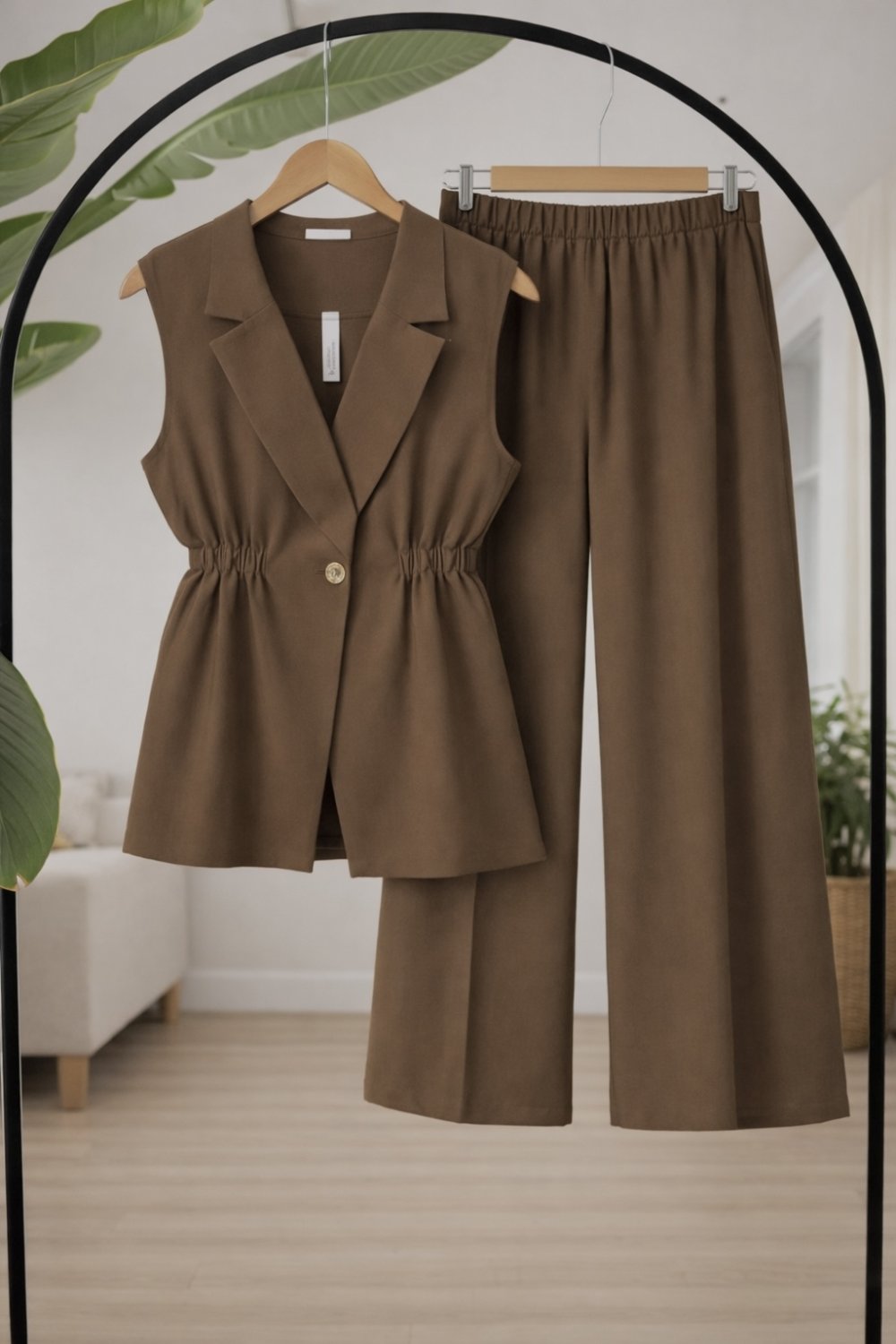 Tek Düğmeli yelekli Takım kahve TB8083