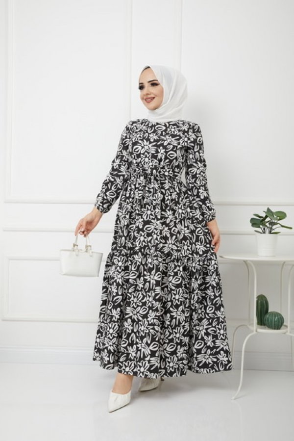 Trikoton Mevlana Model Elbise Siyah UMS1152