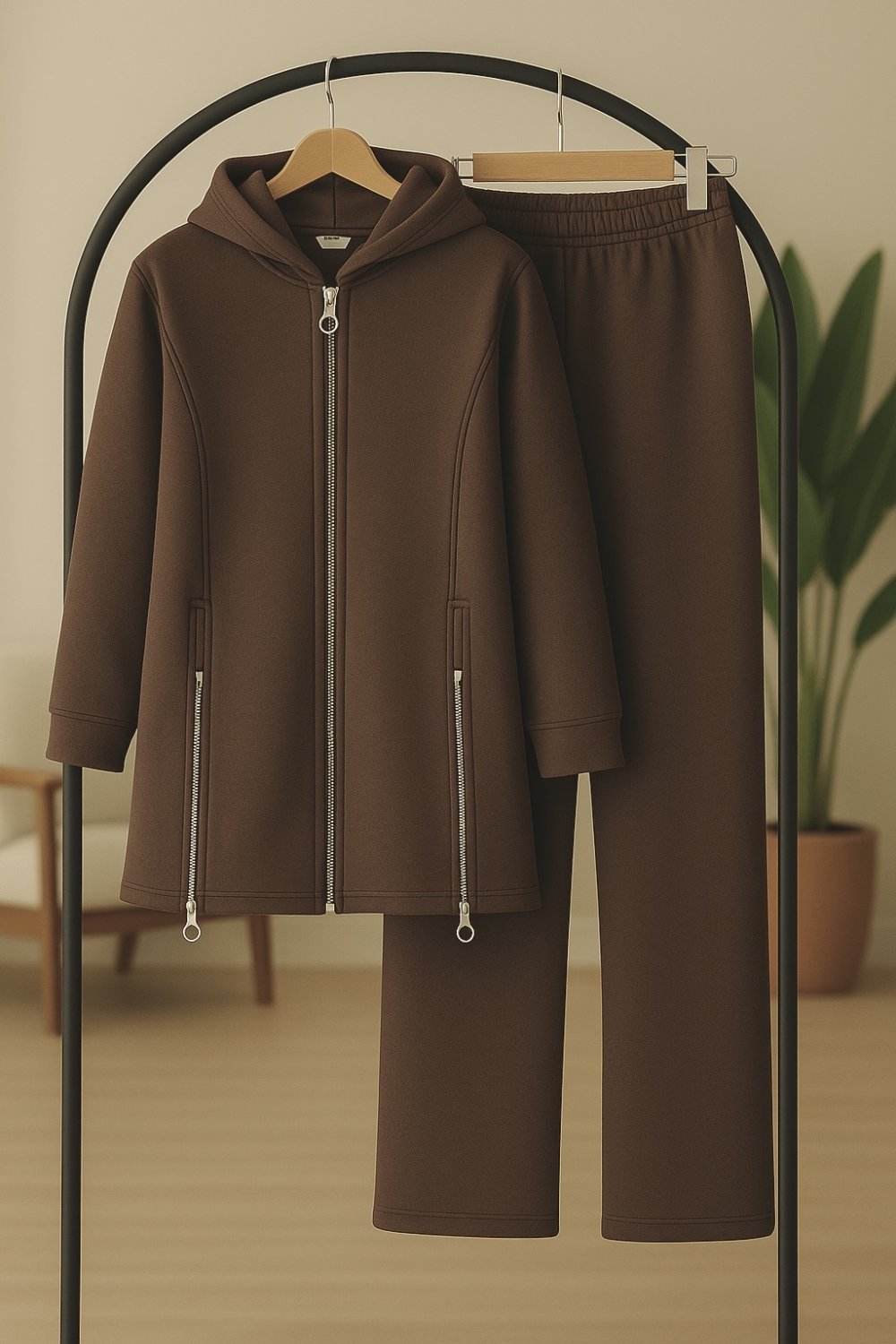 Üçiplik kapşonlu Fermuar Detaylı Takım Kahve UMS50331