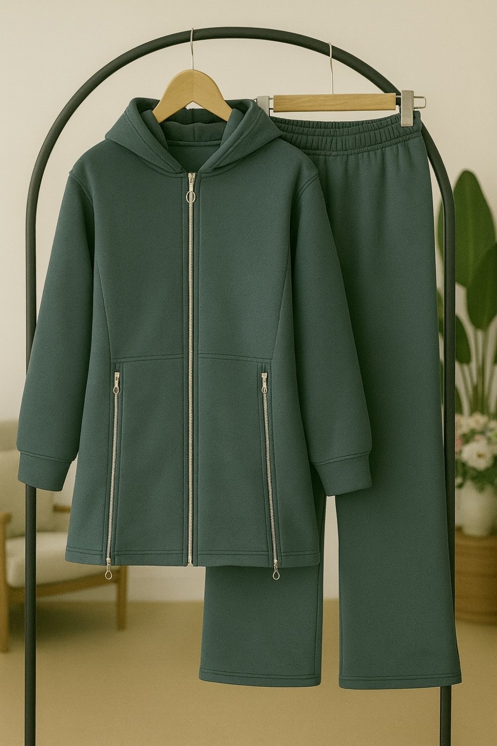 Üçiplik kapşonlu Fermuar Detaylı Takım Zümrüt UMS50331