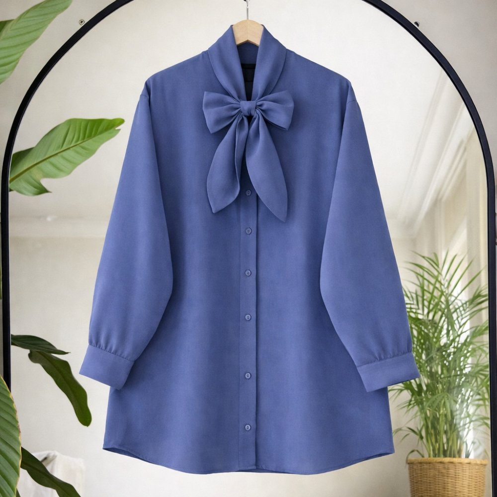 Yaka bağlamalı Fiyonklu Tunik İndigo TB8054