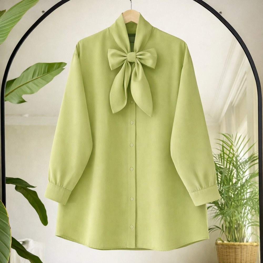 Yaka bağlamalı Fiyonklu Tunik Yeşil TB8054
