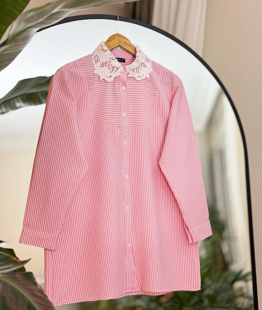 Bu ürün: Yaka dantelli çizgili tunik Pembe NEW 30250