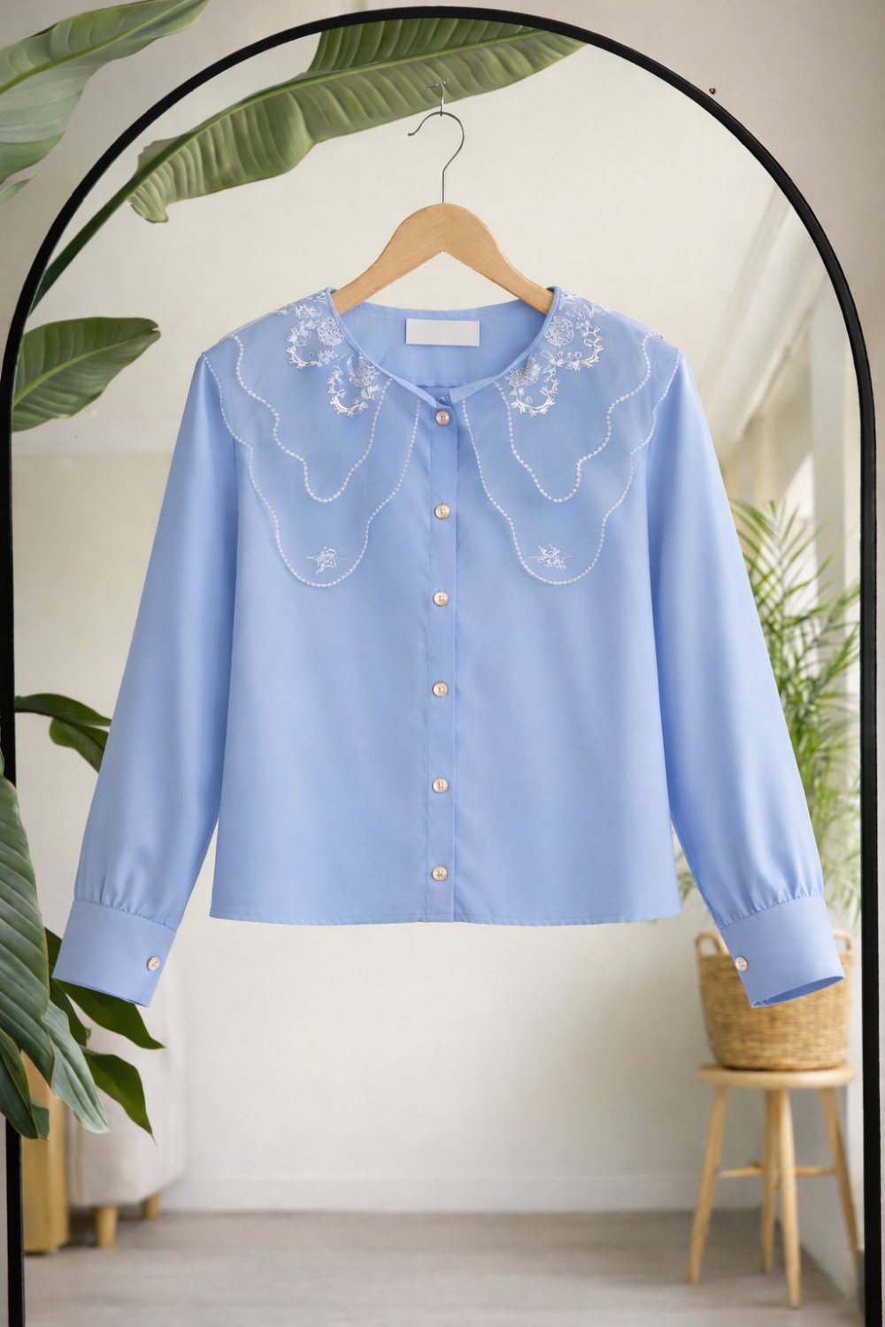 Yaka dantelli Kısa gömlek Mavi BK9542