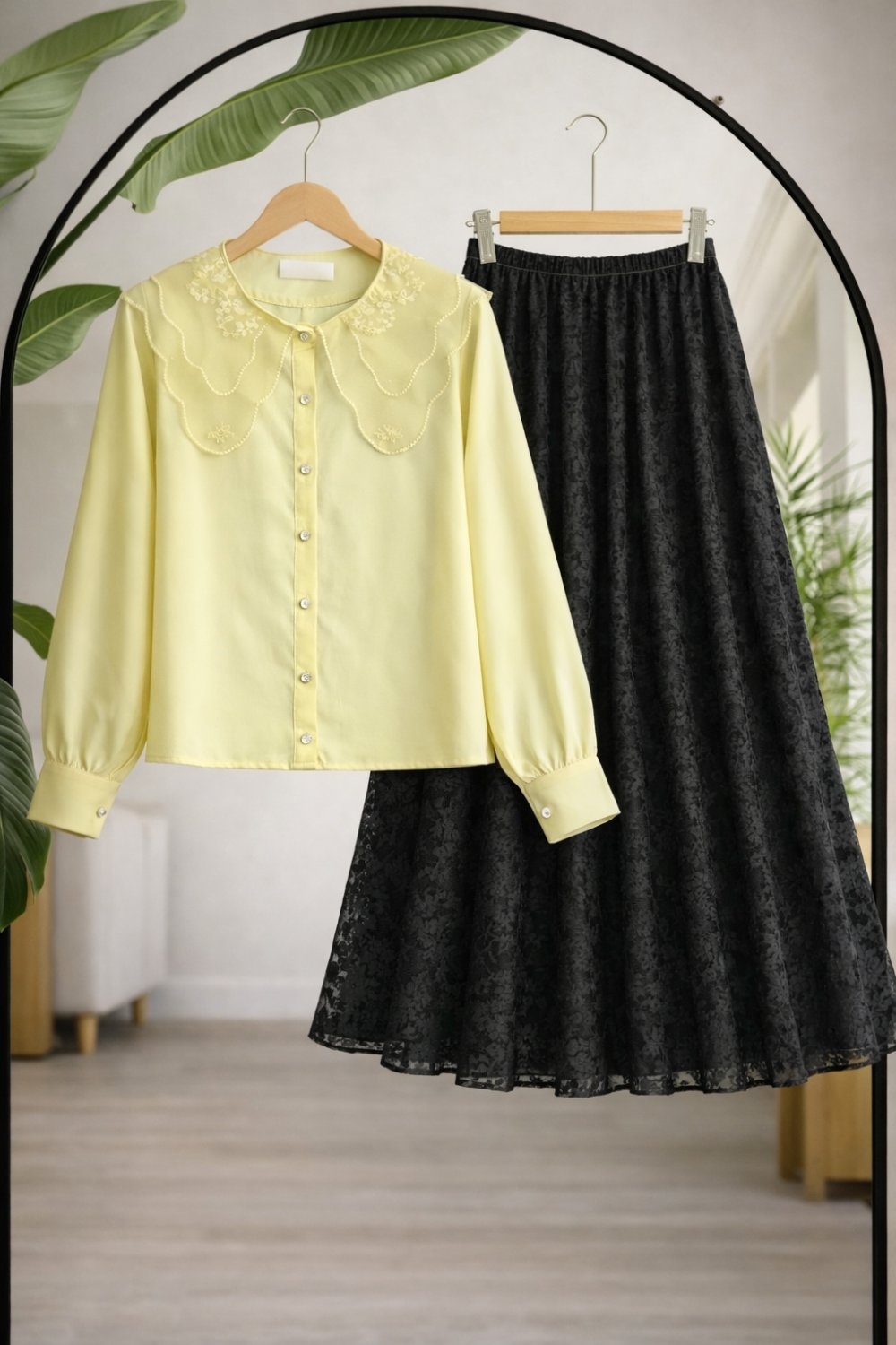 Yaka dantelli Kısa gömlek Sarı BK9542