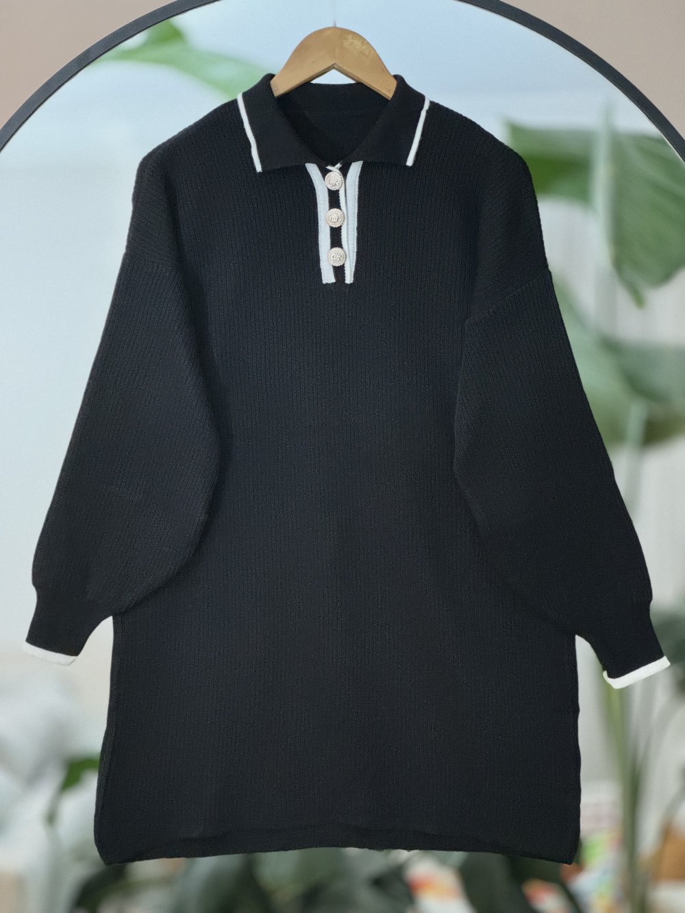 Yaka düğmeli Manşetli Triko Tunik Siyah NSY9020