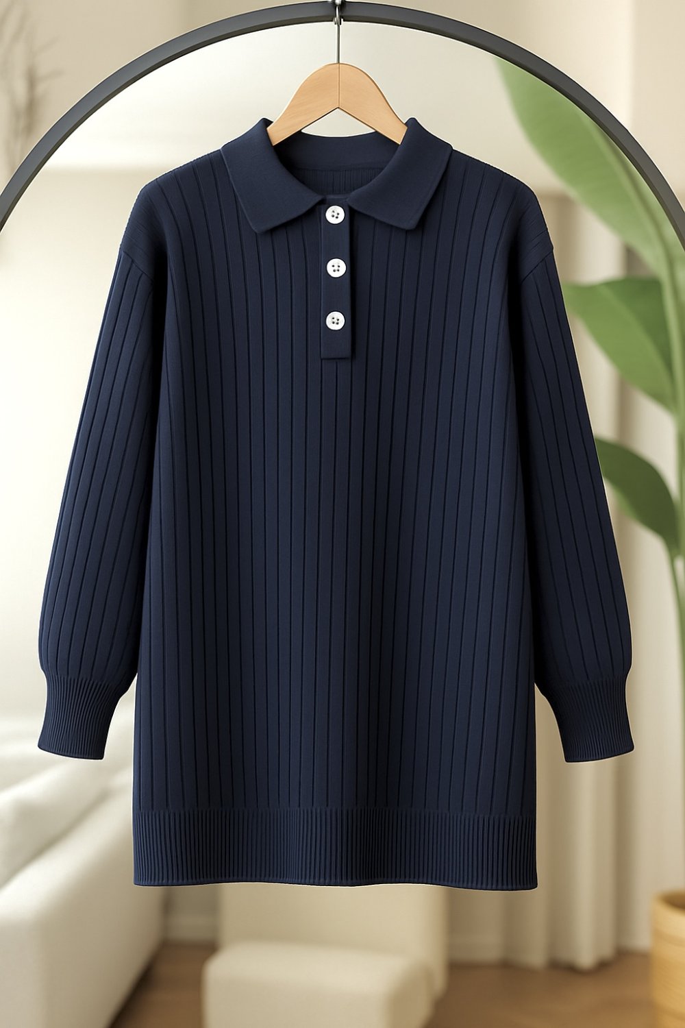 Yaka düğmeli triko Tunik Lacivert NS9030
