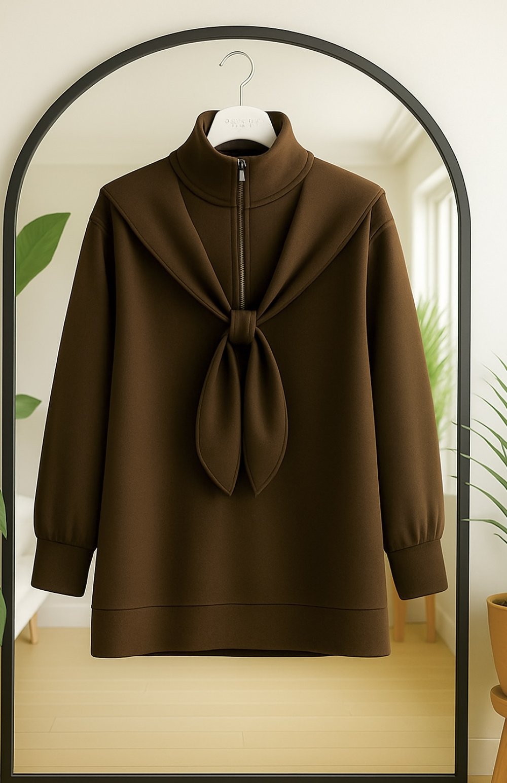 Yaka fermuarlı atkılı Tunik Kahve BK9531