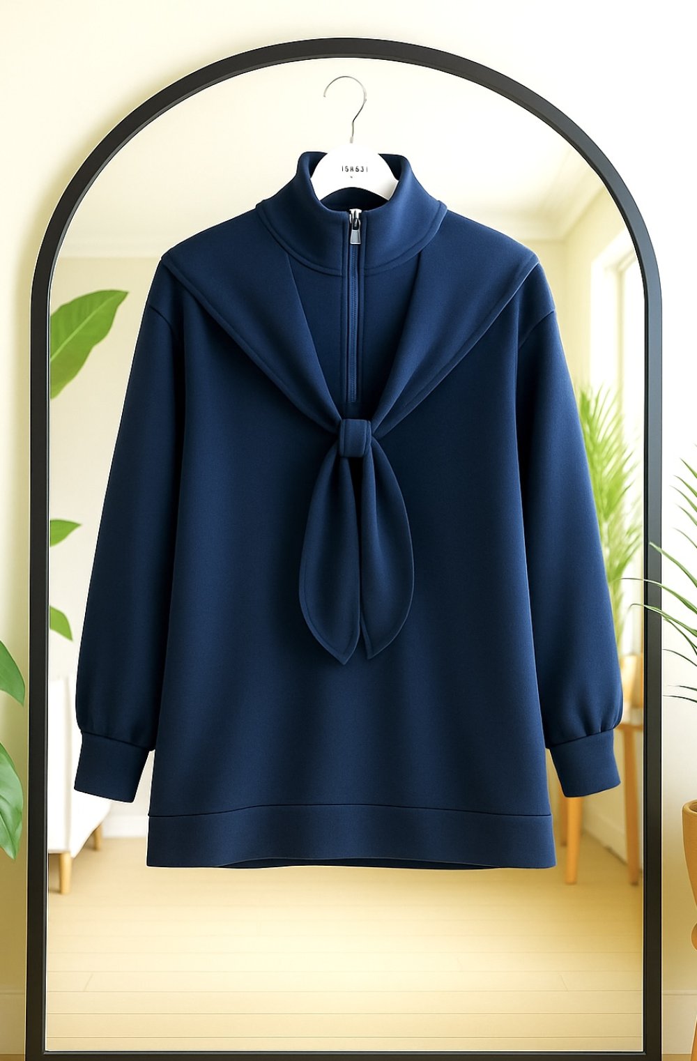 Yaka fermuarlı atkılı Tunik Lacivert BK9531