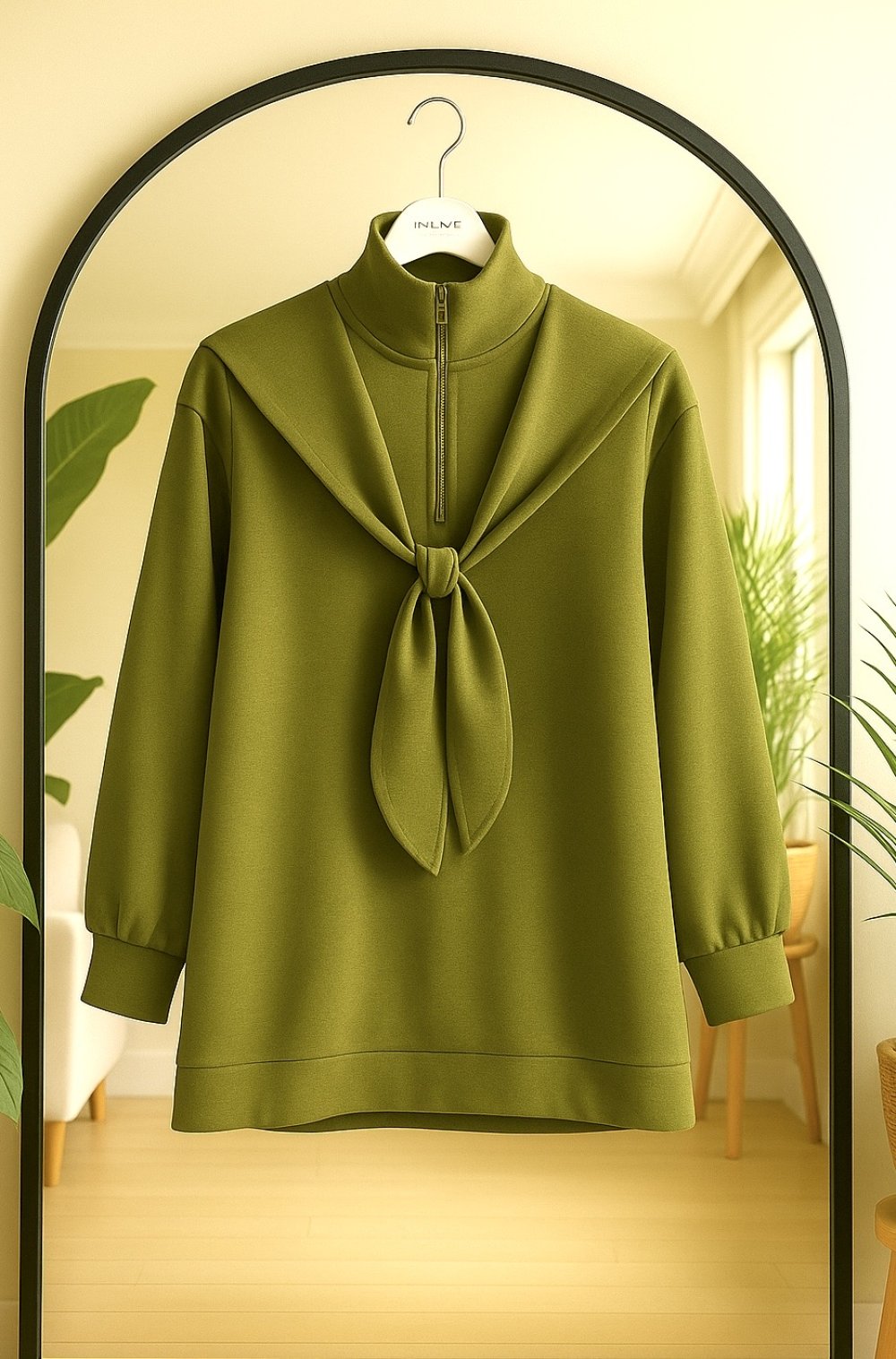 Yaka fermuarlı atkılı Tunik Yağyeşil BK9531