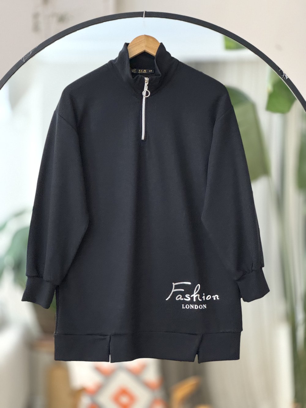 Yaka fermuarlı Oysh tunik Siyah TCN40118
