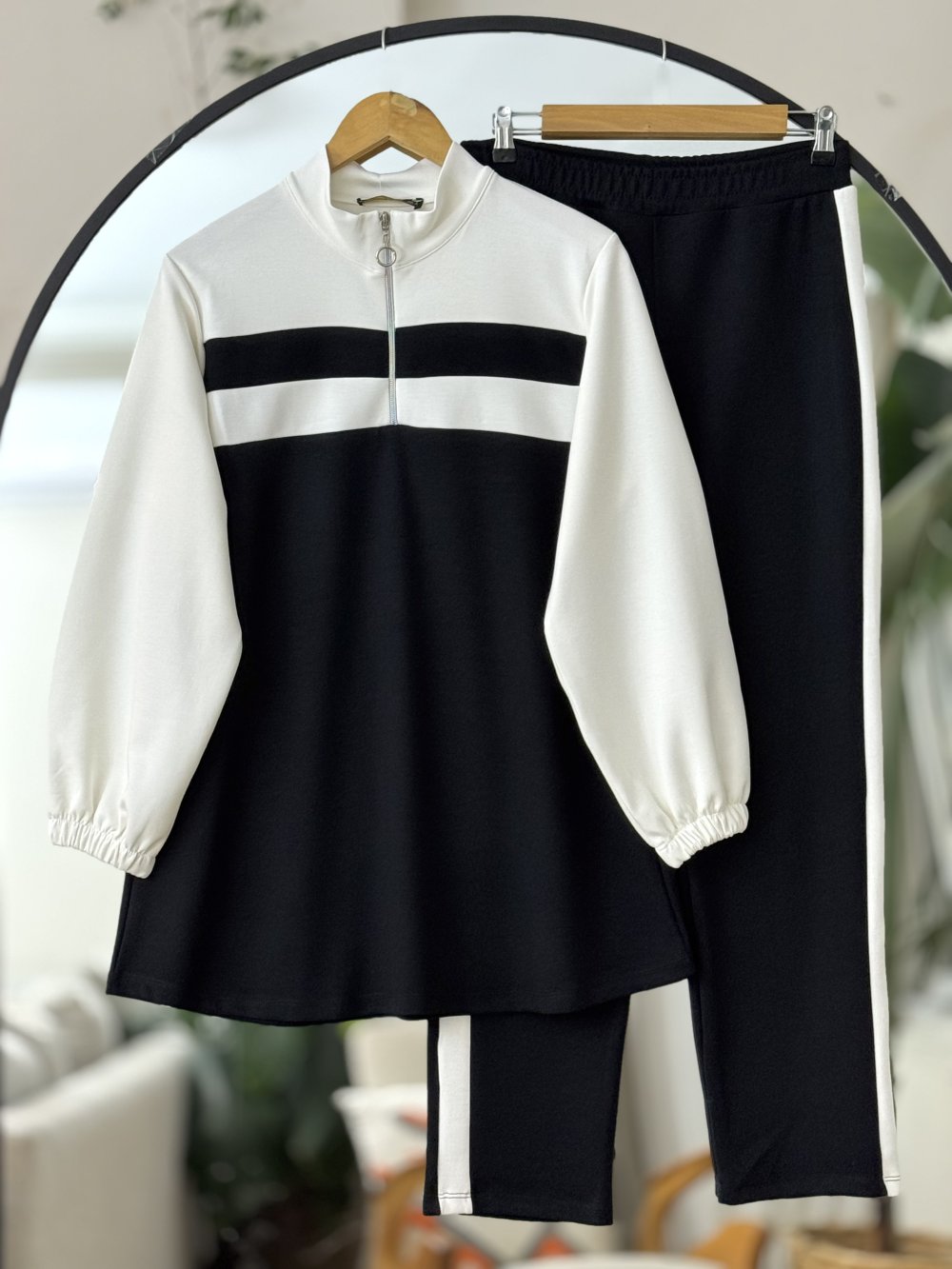 Yaka fermuarlı şeritli oysh Takım Siyah TCN40112