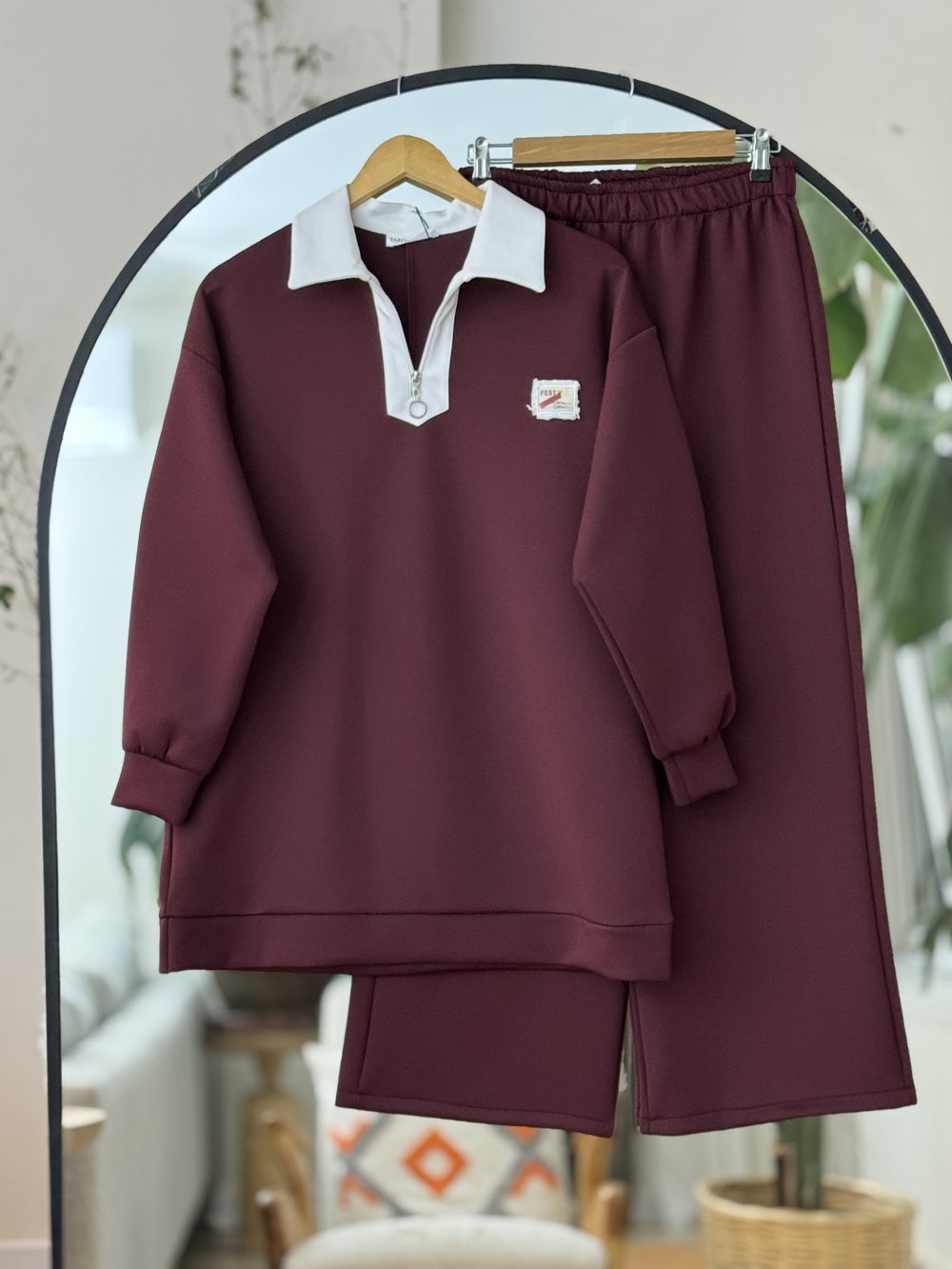 Yaka fermuarlı Takım Bordo YR30549