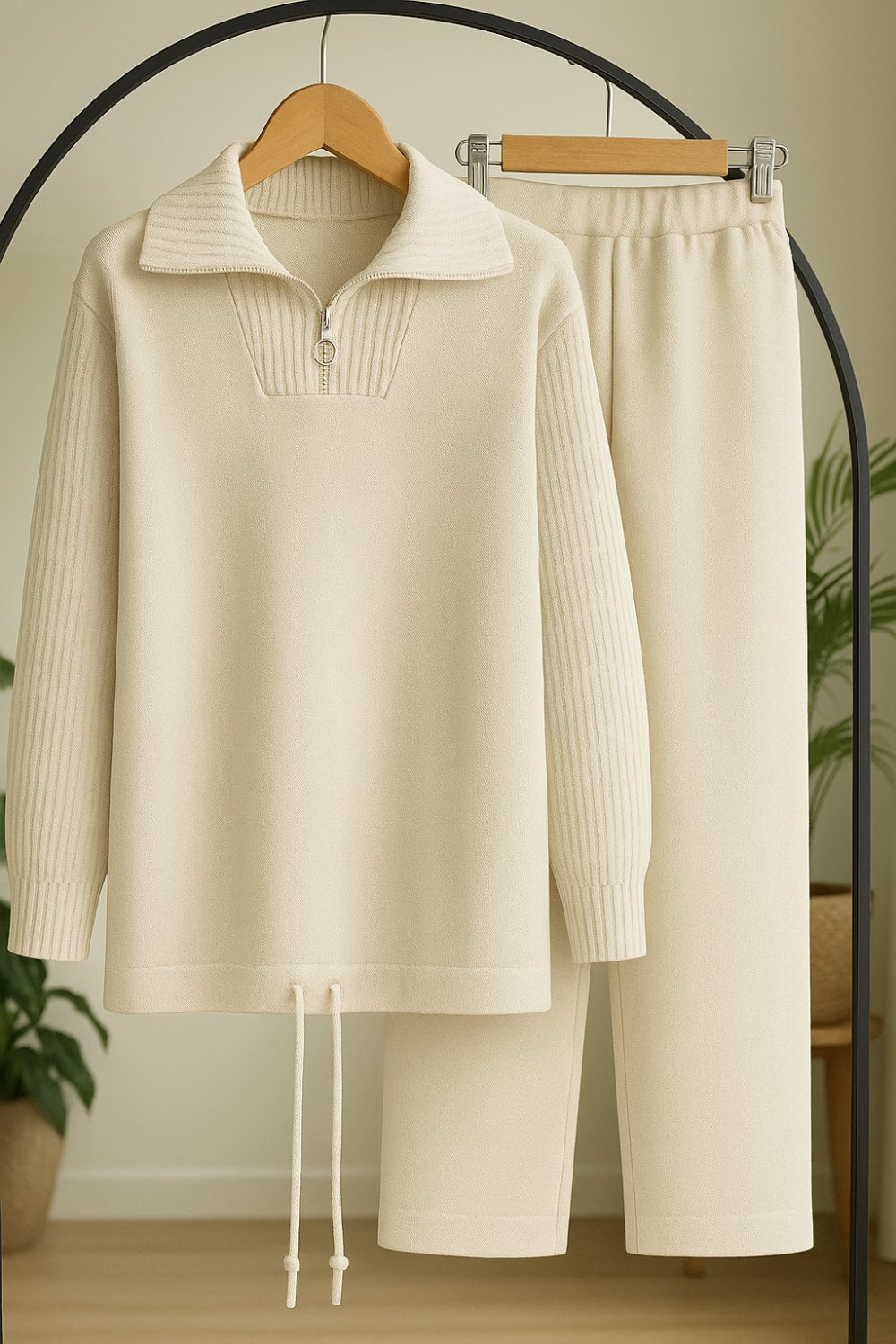 Yaka Fermuarlı Triko Takım Ekru SLT8051