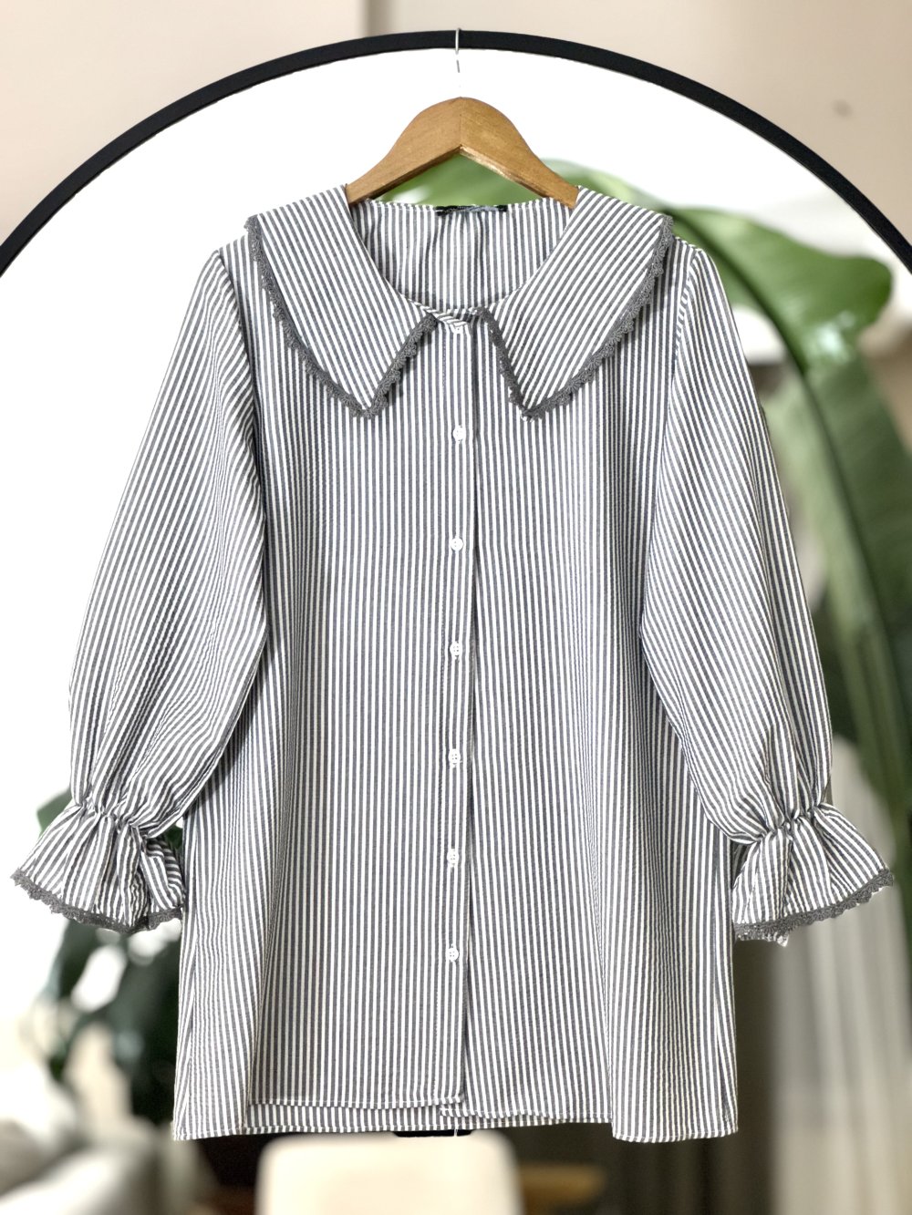 Yaka kol dantel detaylı Tunik Füme NEW6034