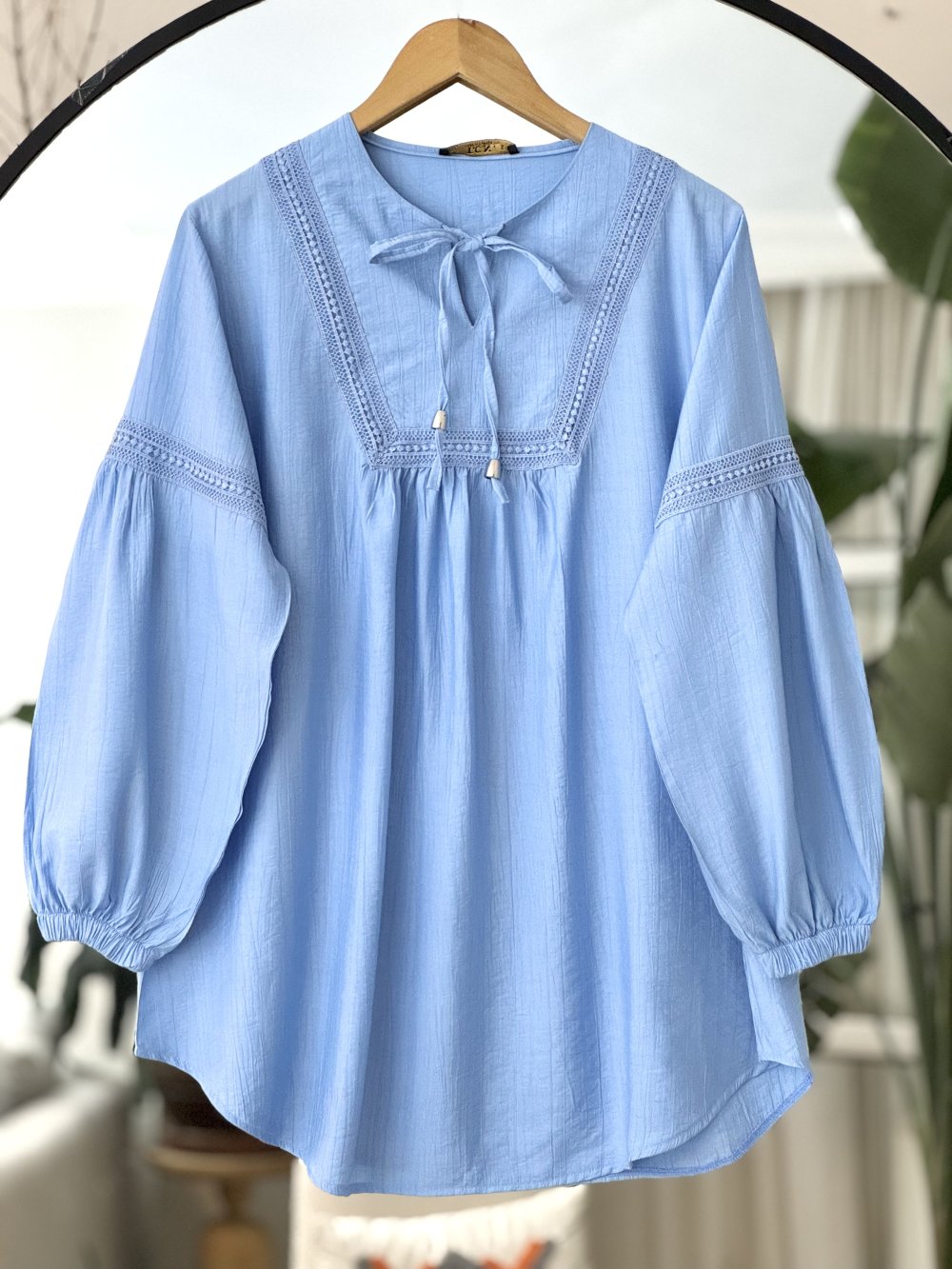 Yaka kol dantel Detaylı Tunik Mavi TCN4093