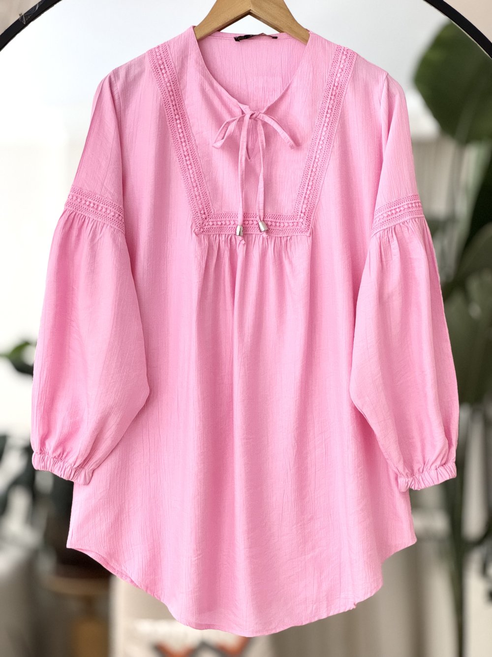 Yaka kol dantel Detaylı Tunik Pembe TCN4093