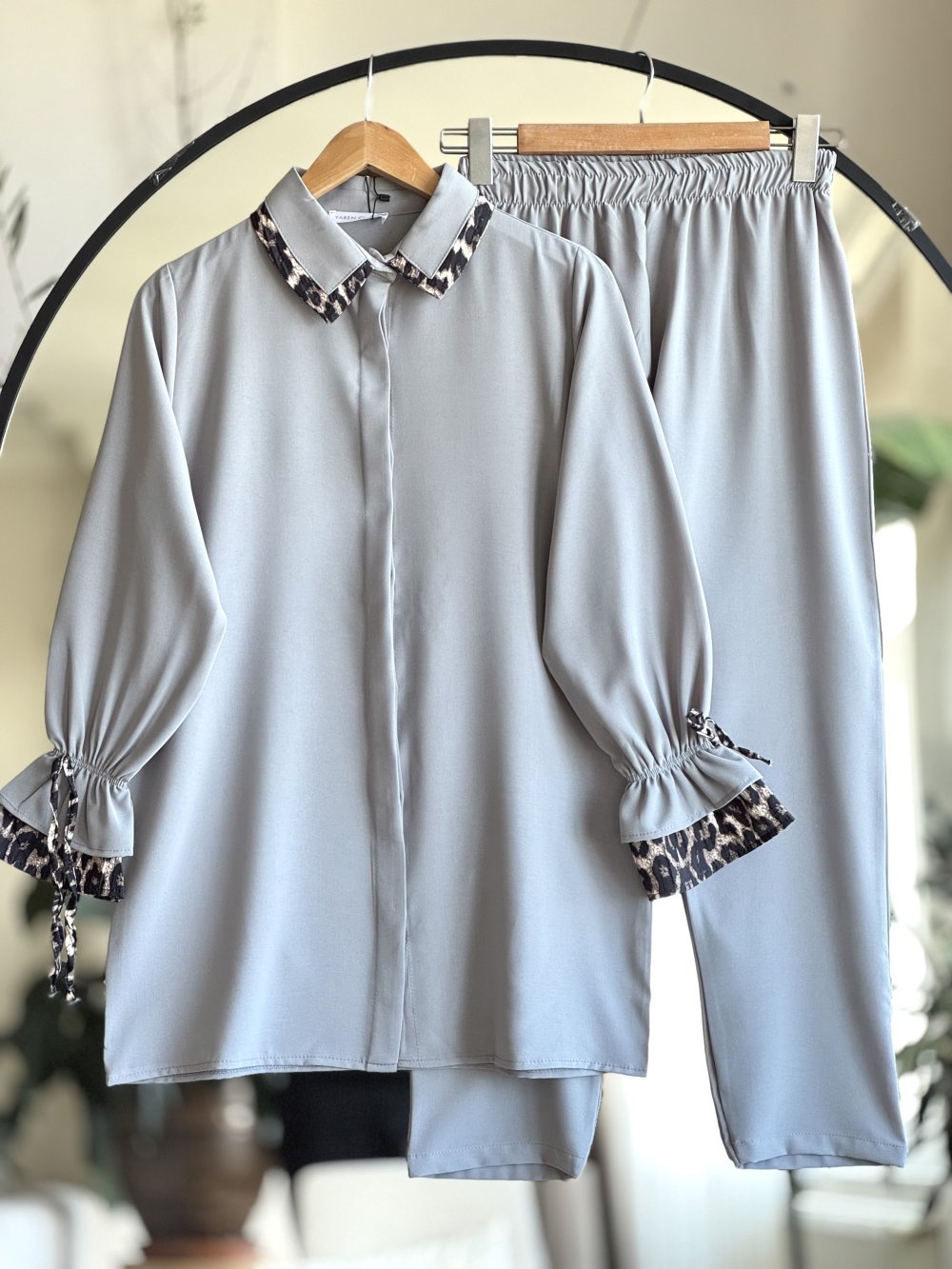 Yaka kol Leopar Detaylı Takım Gri YRN30527