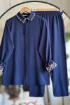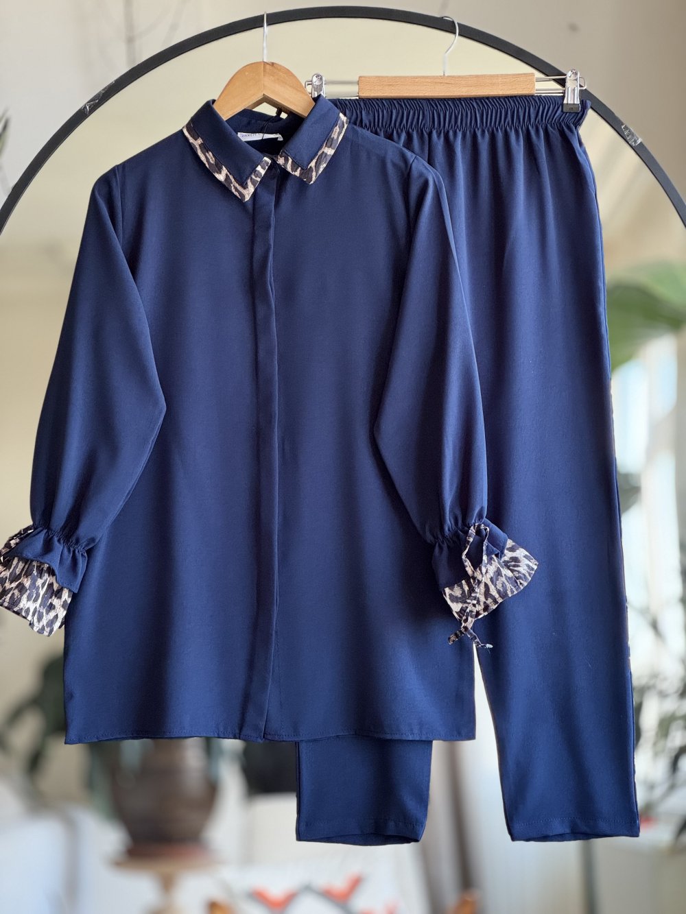 Yaka kol Leopar Detaylı Takım Lacivert YRN30527