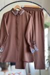 Çır çıt Düğmeli Kapşonlu İkili Takım Kahve TCN40131