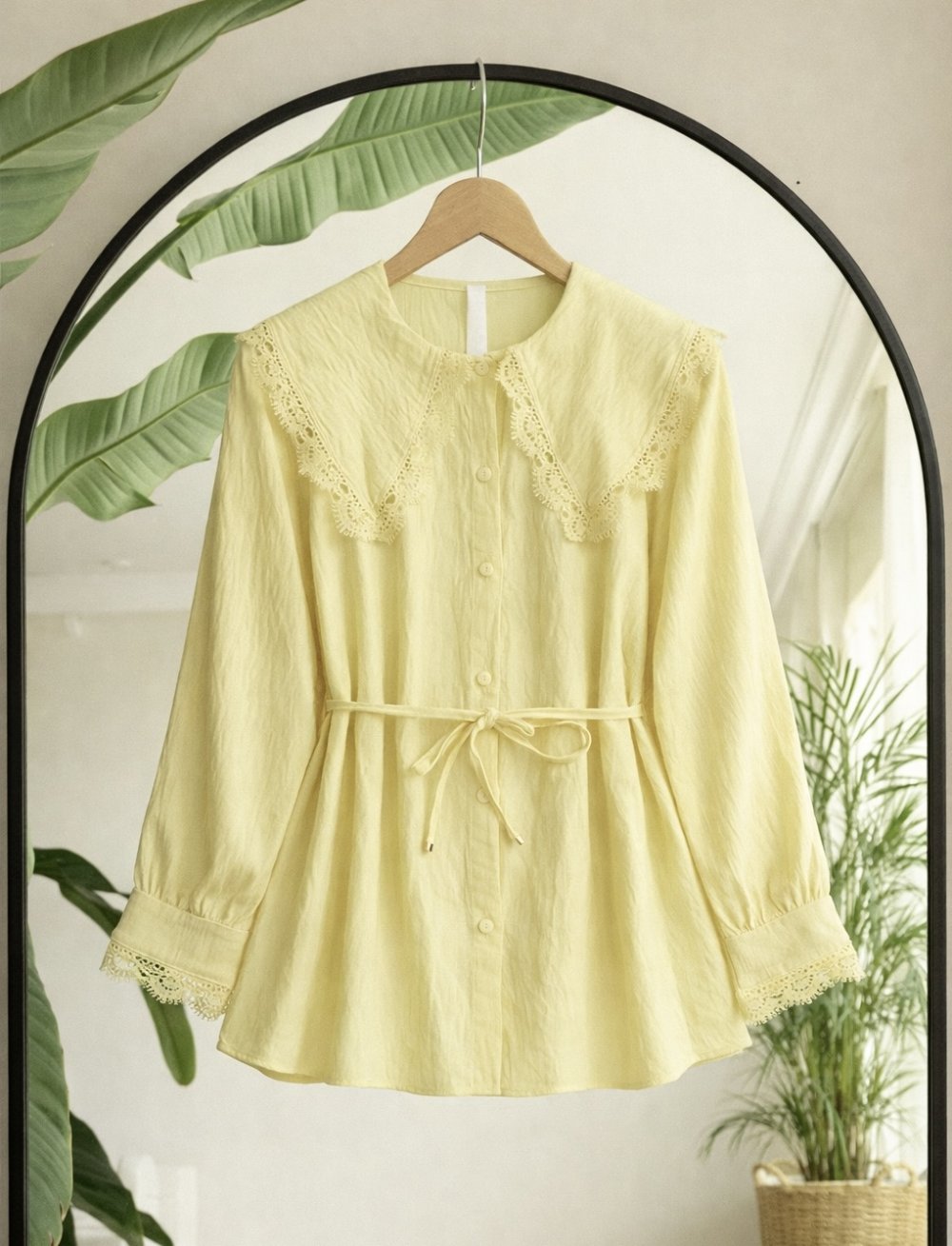 Yaka Kol Manşet Dantelli Gömlek Sarı TB8081
