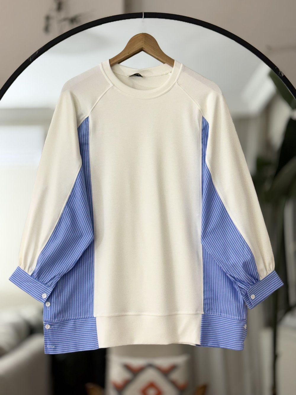 Yan düğmeli garnili Oysh tunik Beyaz NV4529