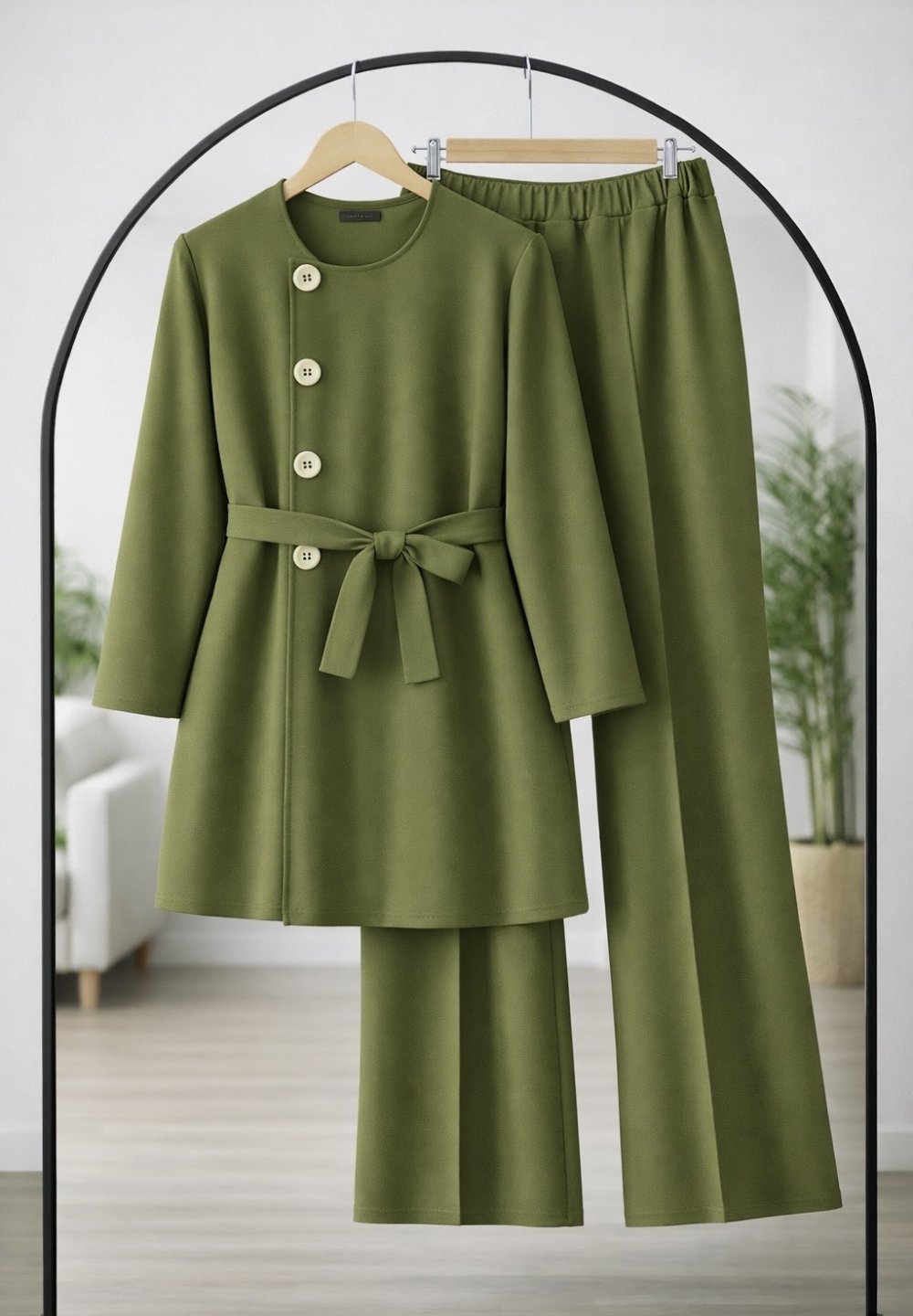 Yan Düğmeli Kuşaklı Takım Yeşil TCN40151