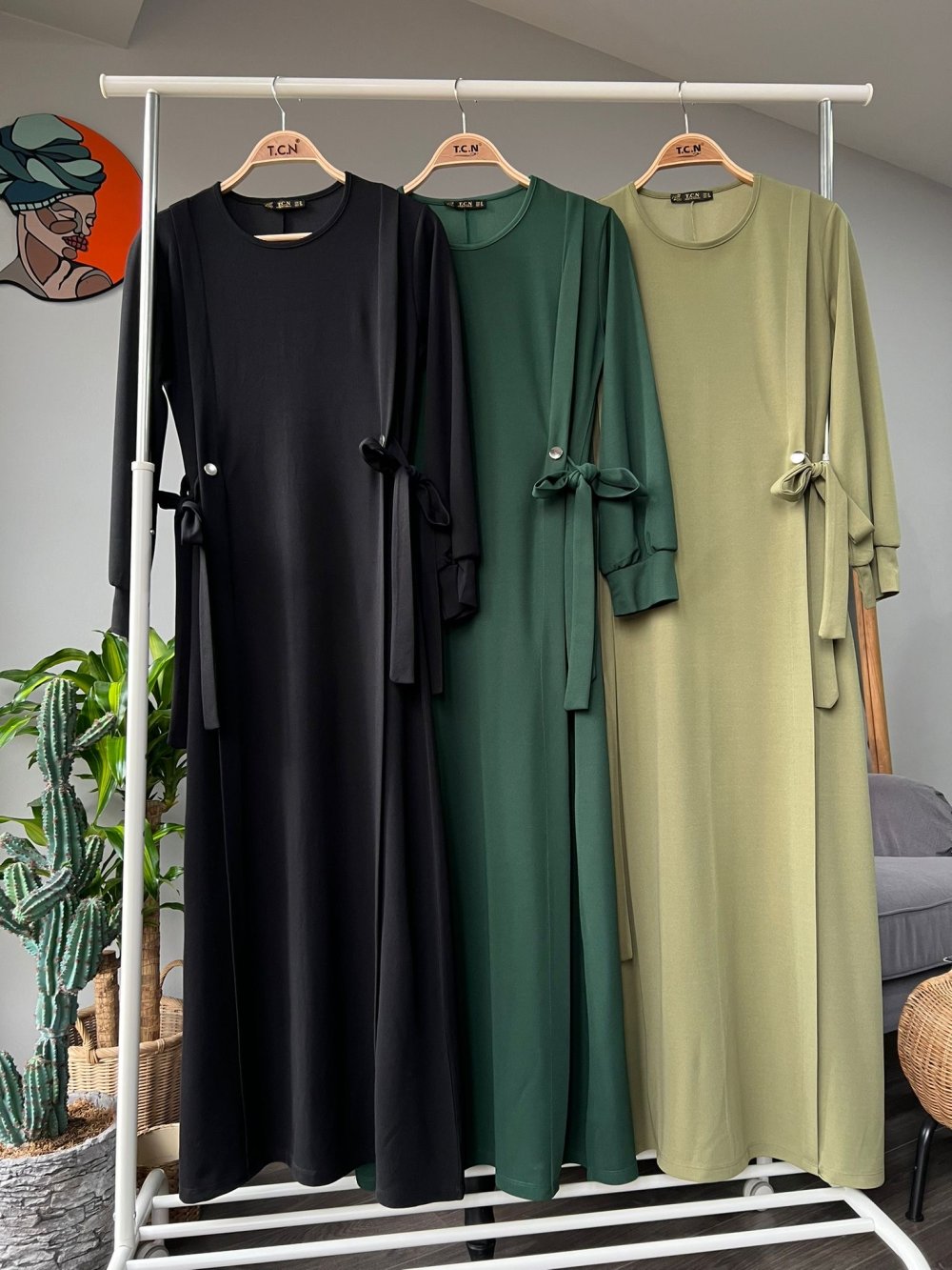 Yandan bağlamalı Rahat kalıp Elbise koyu YeşilTCN4072
