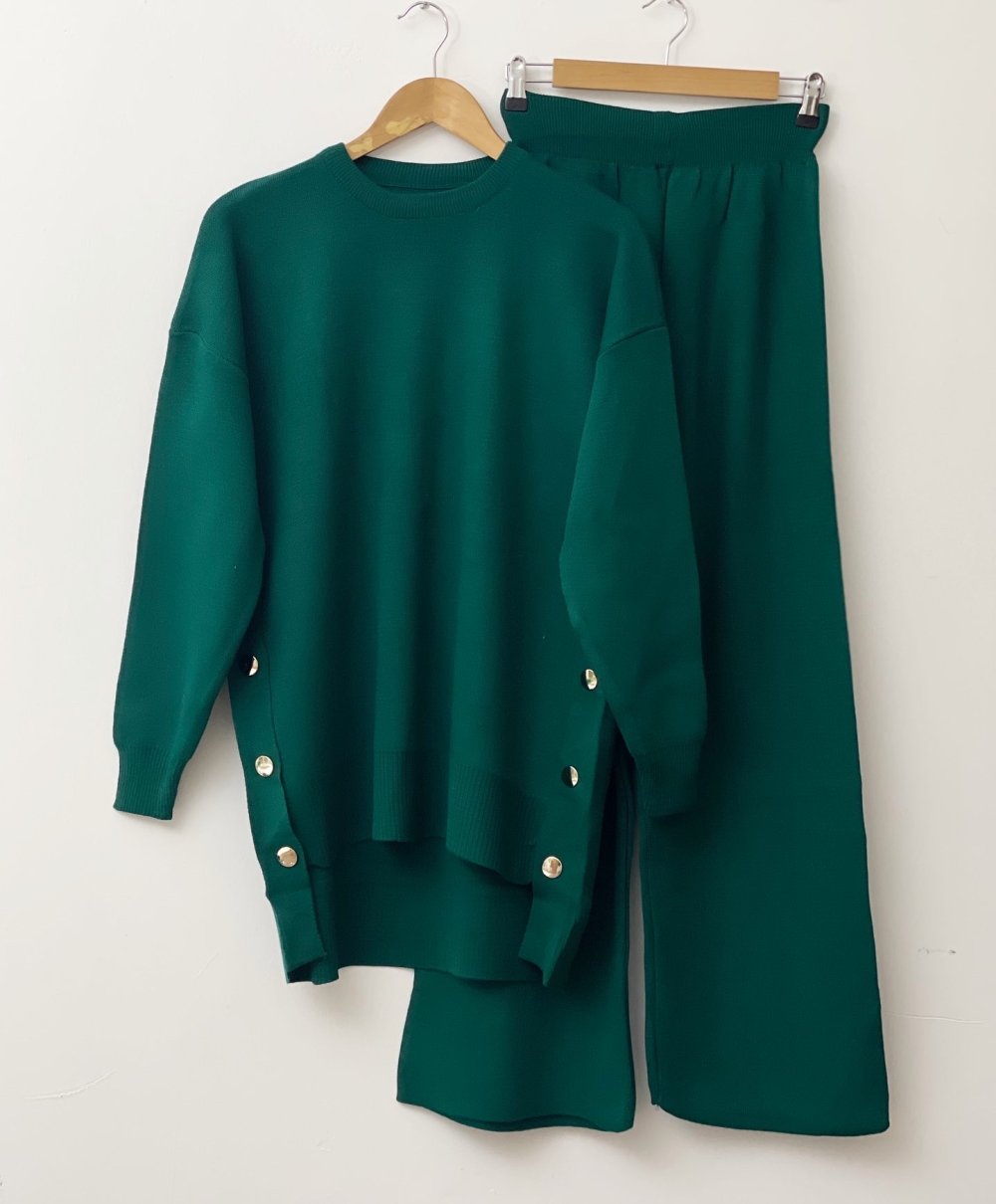 Yanlardan çıtçıtlı triko takım Yeşil SLT30154