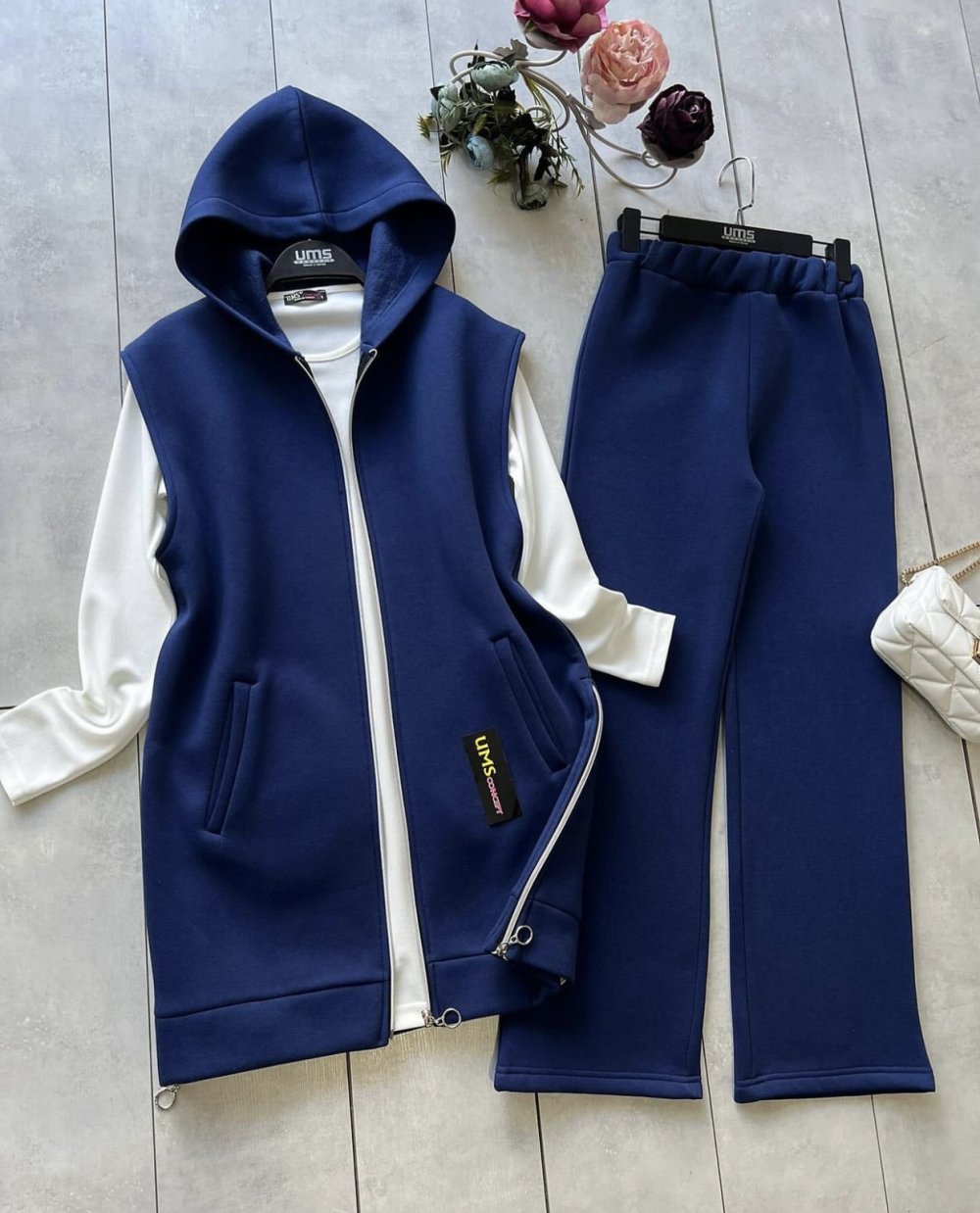 Yanlardan fermuarlı üçlü Takım İndigo UMS50122