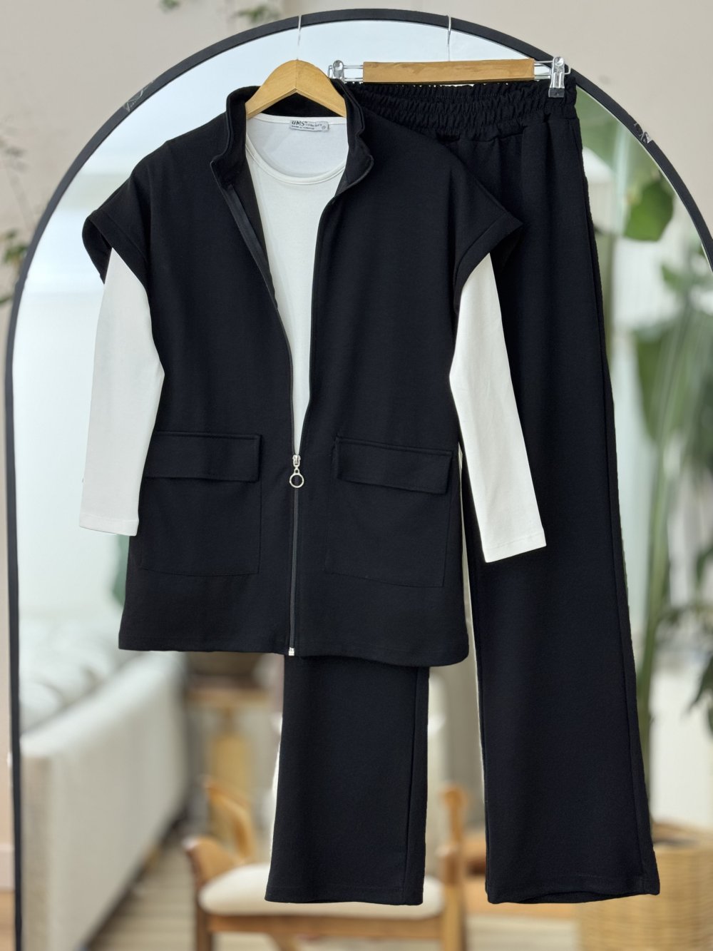 Yelekli fermuarlı üçlü Takım Siyah UMS50312